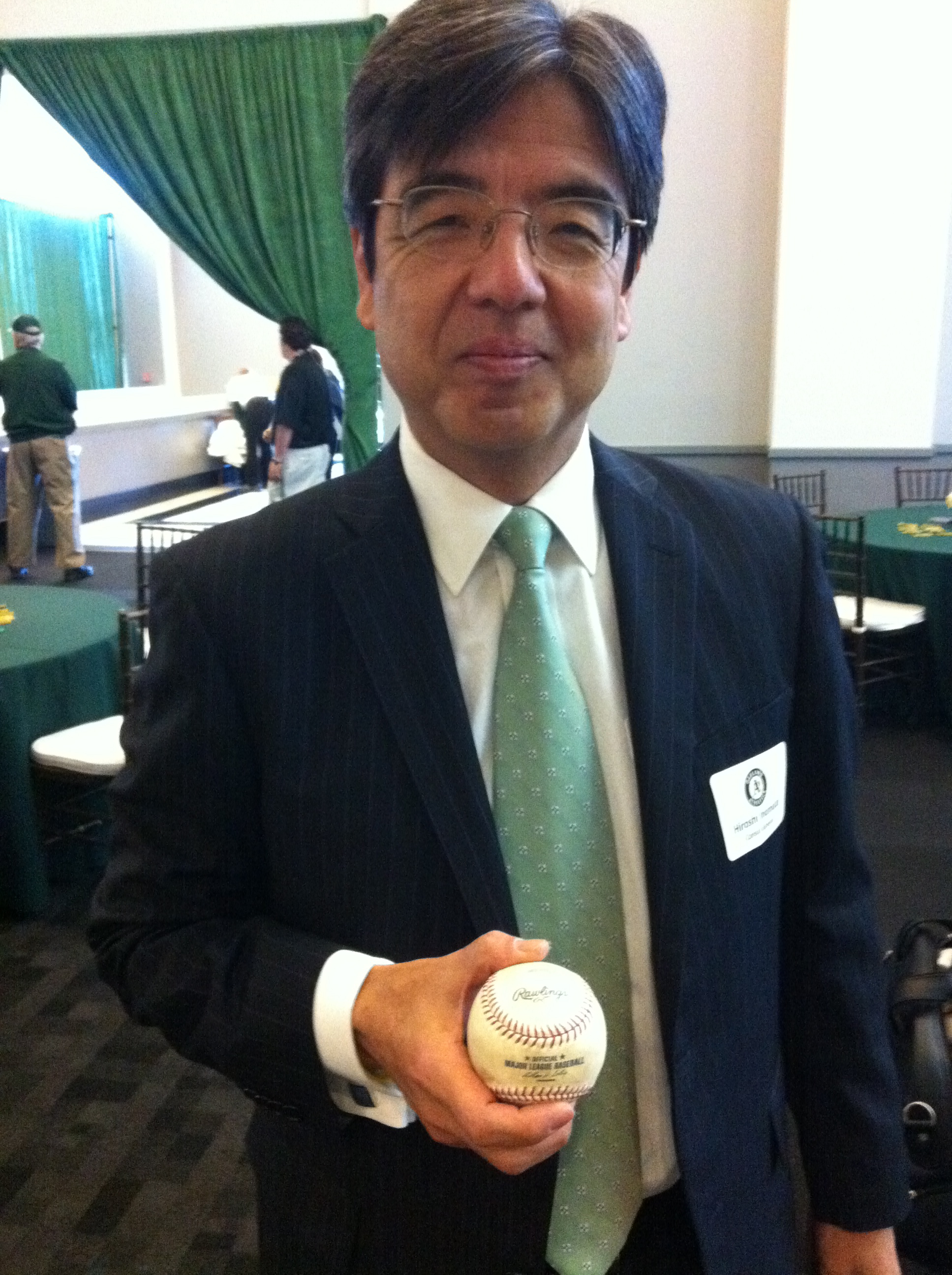 The A’s had been planning on a Japanese heritage day ever since they acquired Hideki Matsui in November 2010. While they hosted a similar event last season, now that Matsui was on the team, they’d really have important reasons to encourage a bridge between the two cultures. As the planning kicked into high gear, I was asked to emcee the pre-game reception for the team’s Japanese sponsors and Matsui’s family. I readily agreed, even though I call myself the worst half-Japanese girl since I don’t even speak a word of the language!