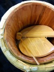 Before and after pictures of a cask of sake from Berkeley’s Takara distillery. True to Shinto tradition, Matsui San, Inomata San and A’s owner Lew Wolff cracked open the barrel for good luck.