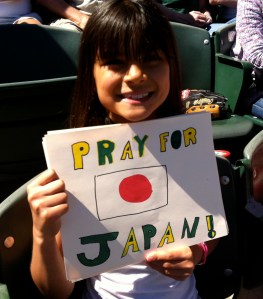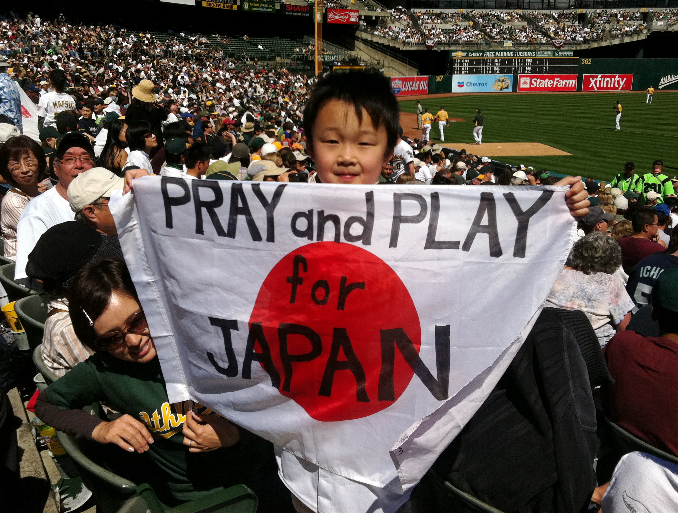 Fundraising for Japan’s disaster relief fund was one of the main focuses of Sunday’s game, and I’m proud to say that A’s fans collected more than 65-thousand dollars. What wonderful generosity. Just as touching were all the displays of love and hope from people in the stands.