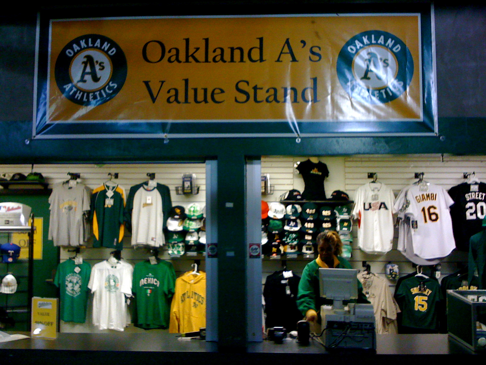 Here’s the best part: they’re still for sale and they only cost $30. I know, amazing deal!!! You can find them at the team’s “Value Stand” behind the Left Field Bleachers. And while you’re there, be sure to check out all the other great A’s merchandise on deep discount.