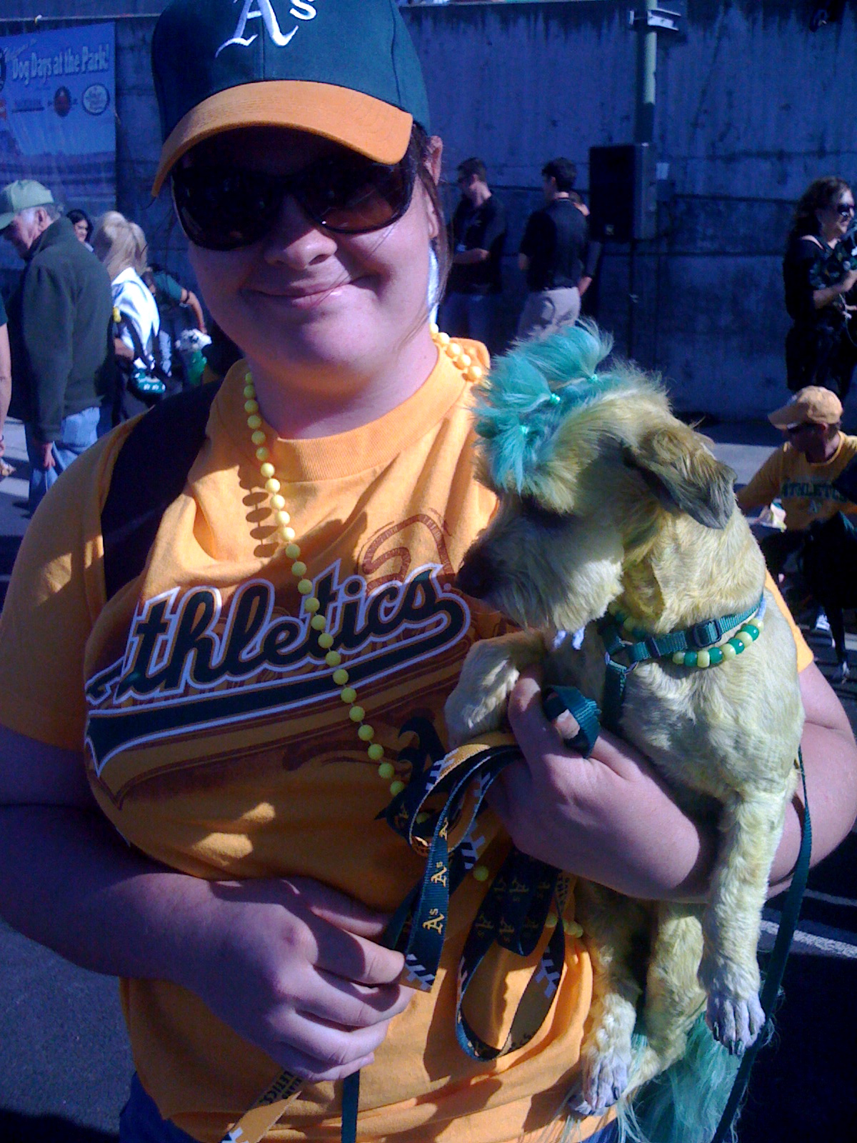 Sadly, one of the losses had to come vs. Chicago on Friday night, Dog Day with the A’s. With a final score of 1-5, the action on the field wasn’t nearly as interesting as the fans we had sitting in the Plaza Reserved section of the outfield.