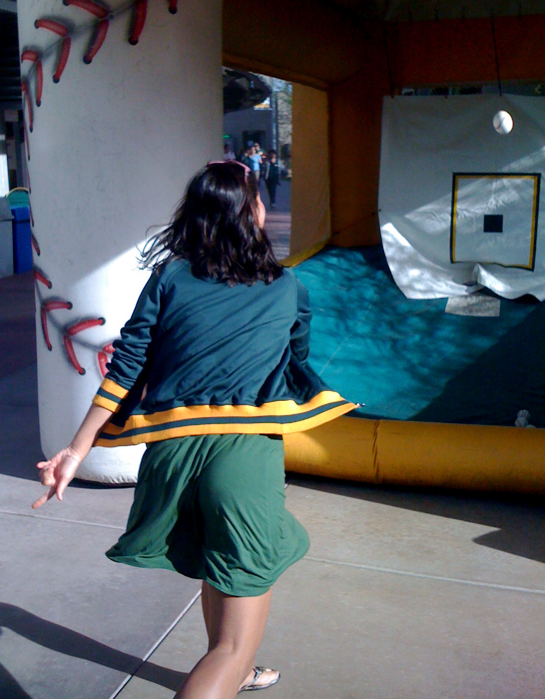 Fans, enjoy the rest of Spring Training — soak up that Arizona sun while you can! And have fun at the Phoenix Muni — here’s one last photo of me at the fastball contest in the breezeway behind the seats. Pay a dollar, get three throws. Yikes! I was horrible. My fastball came in at 38 miles per hour. I have a whole new respect for our starting rotation…