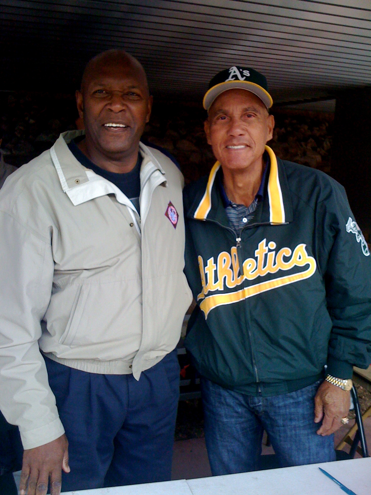 Fans visiting the Muni during the second week of Spring Training were lucky enough to have the opportunity to meet some of Oakland’s greats: Vida Blue and Bert Campaneris (Rollie Fingers was also there, but I didn’t see him when I took this photo). In typical ST fashion, these guys were so casual, signing autographs and joking and chatting it up with fans. You can really tell that both of these two guys still love to be around the game of baseball and are committed to giving back through the sport where they made their names and established their legacies. Both Vida and Bert are also avid golfers, so I very much look forward to seeing them at the next A’s Community Fund Golf Tournament later on this Spring.